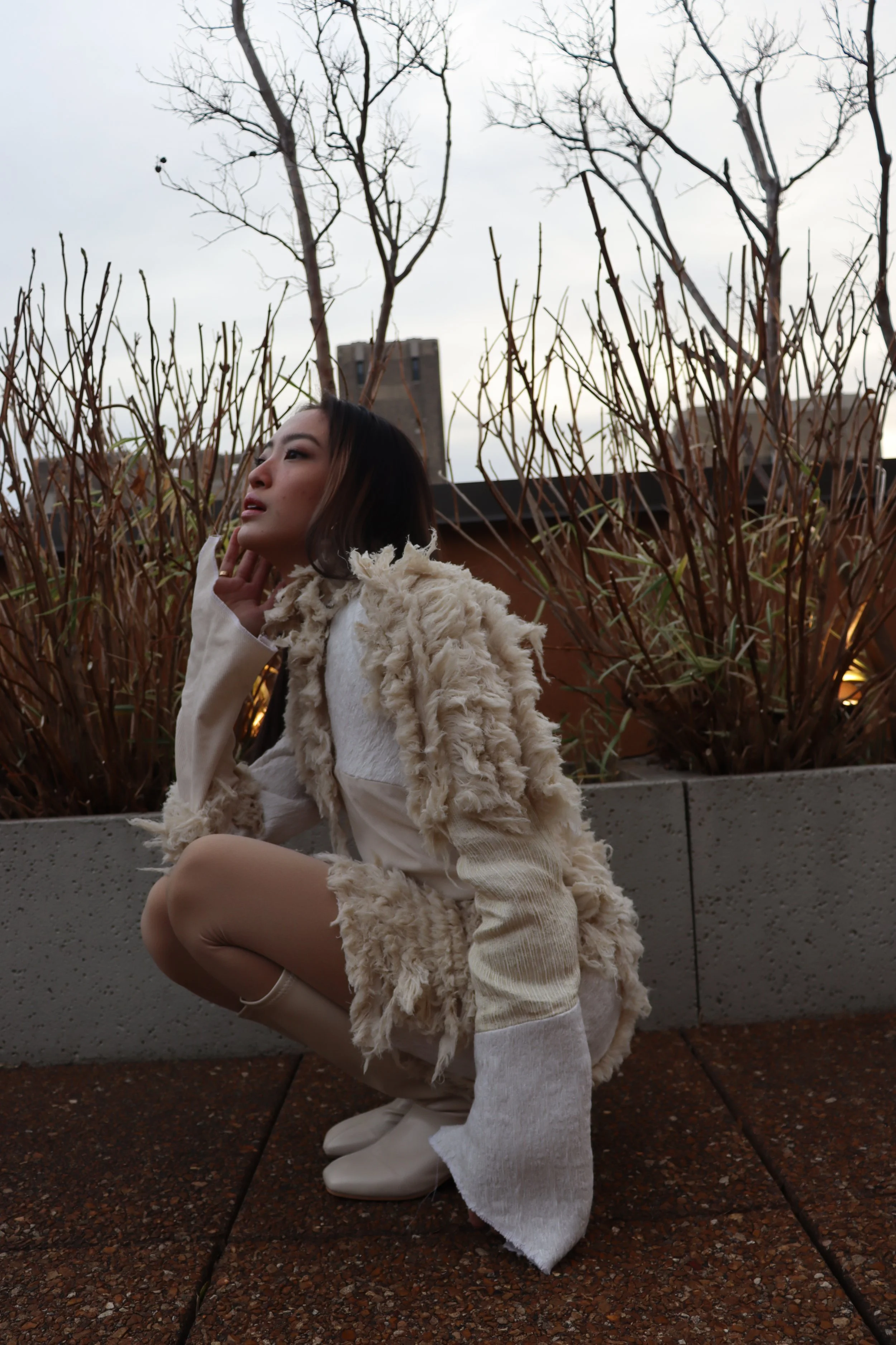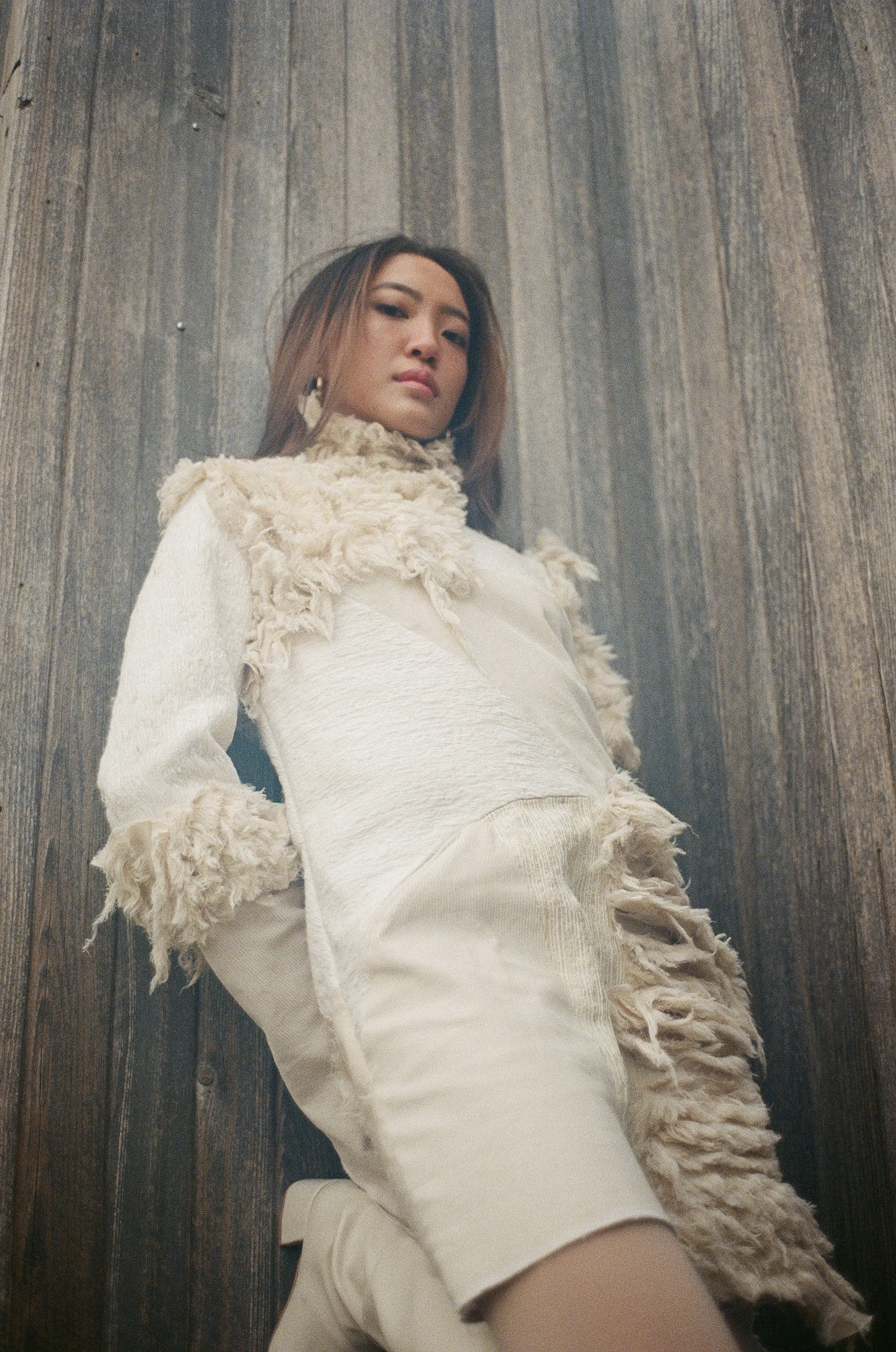 The psychology of the con artist — a figure defined by intelligence, adaptability, and quiet confidence. Through fractured surfaces, layered textures, and material experimentation, the garments reflect shifting identities and the subtle tension between appearance and truth. The pieces become transformative skins, where material contrasts and structural breaks embody the charm, control, and calculated deception behind the persona.